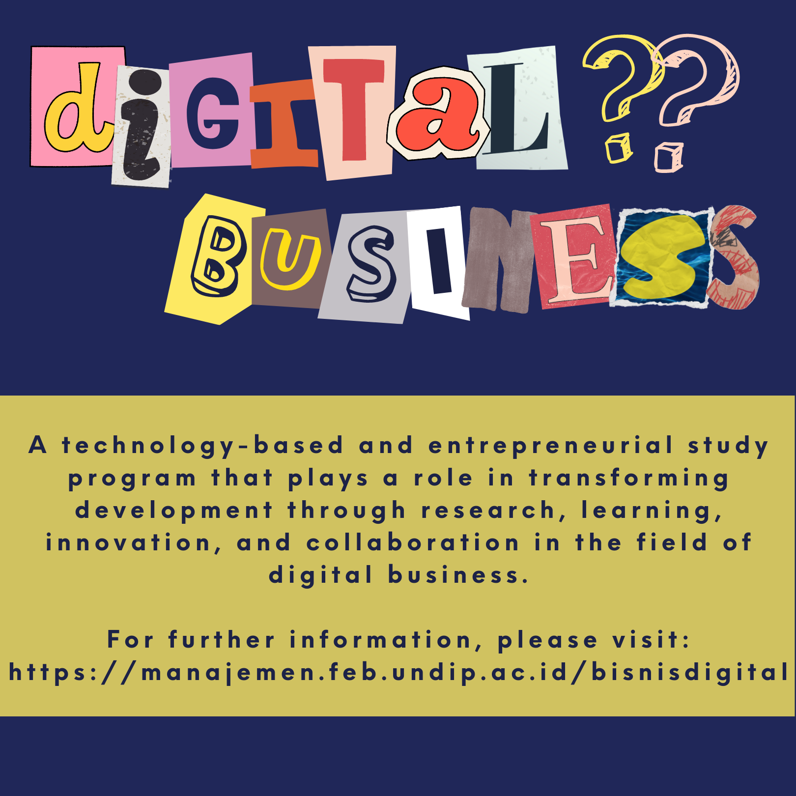 Program studi ini memberikan kesempatan bagi mahasiswa yang ingin mengembangkan diri dalam dunia bisnis saat ini serta menguasai teknologi, khususnya dalam bidang bisnis saat ini dan masa depan. Program studi ini unggul dalam membantu mahasiswa memahami konsep bisnis melalui penggunaan teknologi. Tujuan Program Studi Bisnis Digital adalah untuk melatih sumber daya manusia untuk berkarir di bidang big data, artificial intelligence, dan digital start-up.